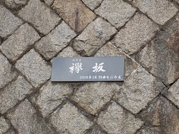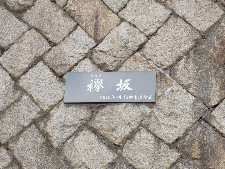 その途中の石垣に、『襷坂(タスキザカ)2018年3月 鞆中生徒命名』と刻まれた表示板が…