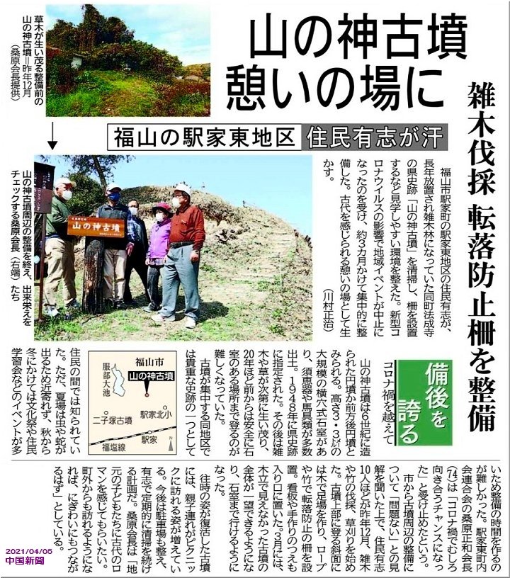 今年の4月でしたか…中国新聞sanの朝刊に、こんな「山の神古墳」紹介記事もありましたから、「二子塚古墳」へと向かう事となりました(^.-)☆