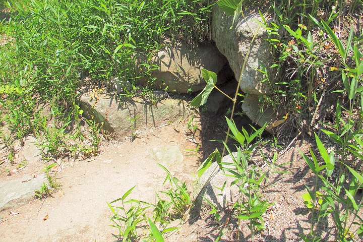 玄室から開口部は、左片袖式。各部の石材は、几帳面なほど長方形に整形された割石を積み上げています。大佐山古墳群などの洗練された切石造りの石室とは対照的で、やはり初期の横穴式石室だろうと思われます。