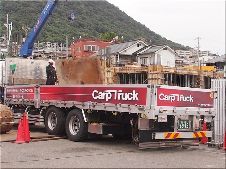 途中、藤井病院の建設現場で「CarpTruck」に眼が止まり、2枚ばかりパチリです。ナンバーは勿論、広島ナンバーでありました(^.-)☆