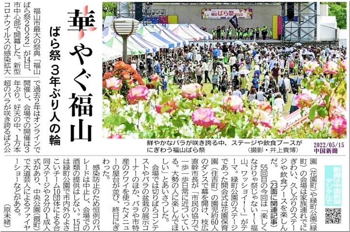 5/14(土)〜5/15(日)の2日間は、3年振りに規模縮小で「福山ばら祭2022」が開催でした(^.-)☆