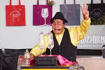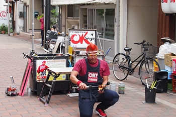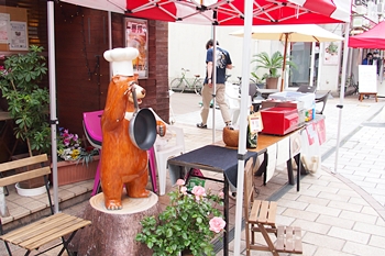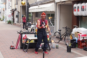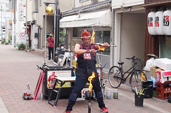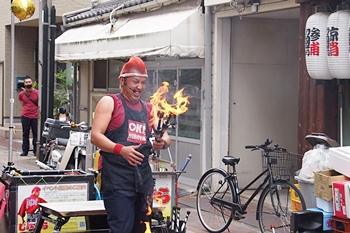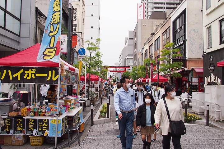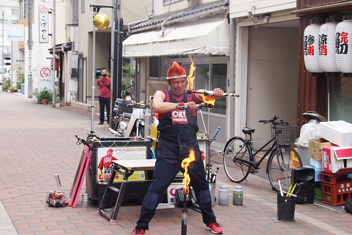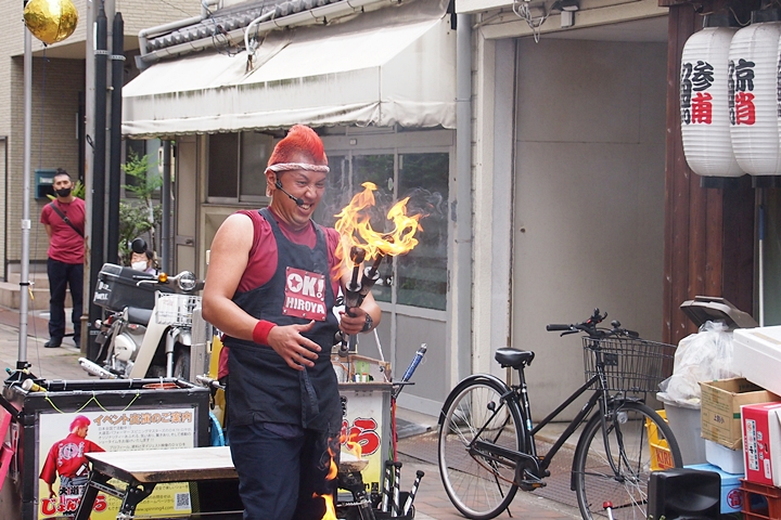『たちどまら ないでください!』と呼び掛けておられますけど、通りの両側に出店を設置し、ステージの前とか、通りの真ん中で大道芸では、立ち止まらざるを得ません(^-^)