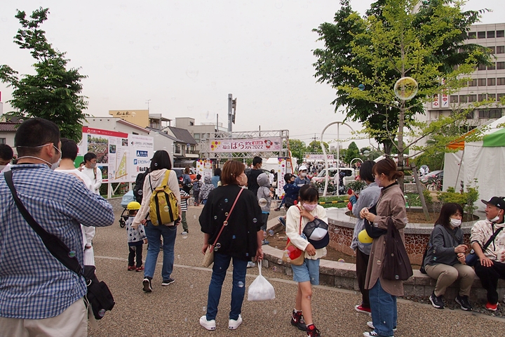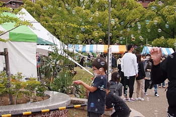 見ている分には楽しいのですけど、シャボン玉が漂っています中を通り抜けなければなりません。