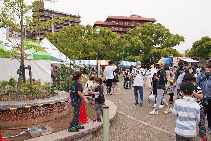 ばら公園の南側出口方向に向かっておりますと、シャボン玉が(^_^)v
