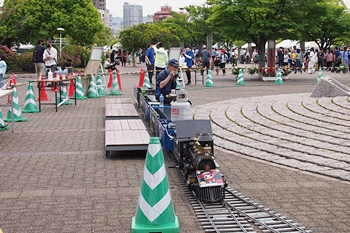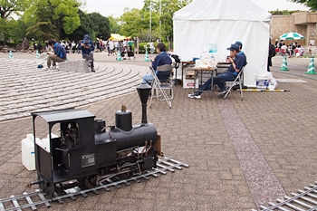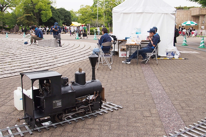 蒸気機関車(今は、プロパン使用ですネ)を横目に通り過ぎていますと、皆さん、お食事中。ランチタイムで機関車は休止中でありました。