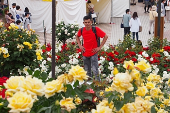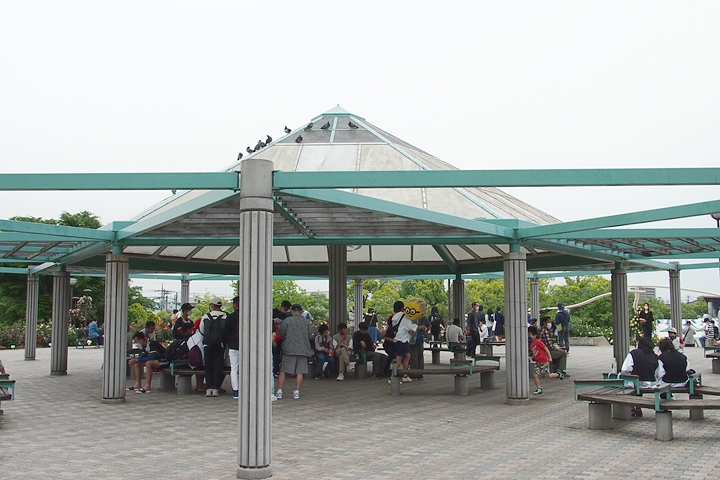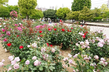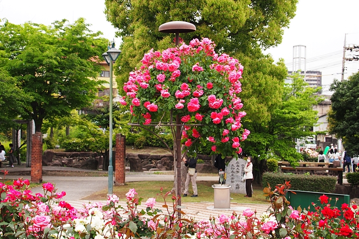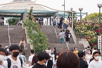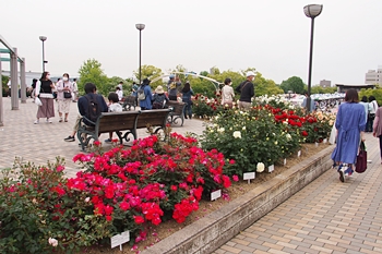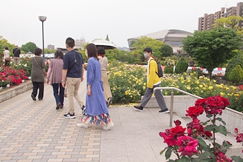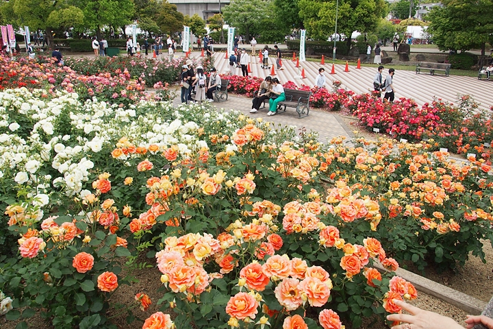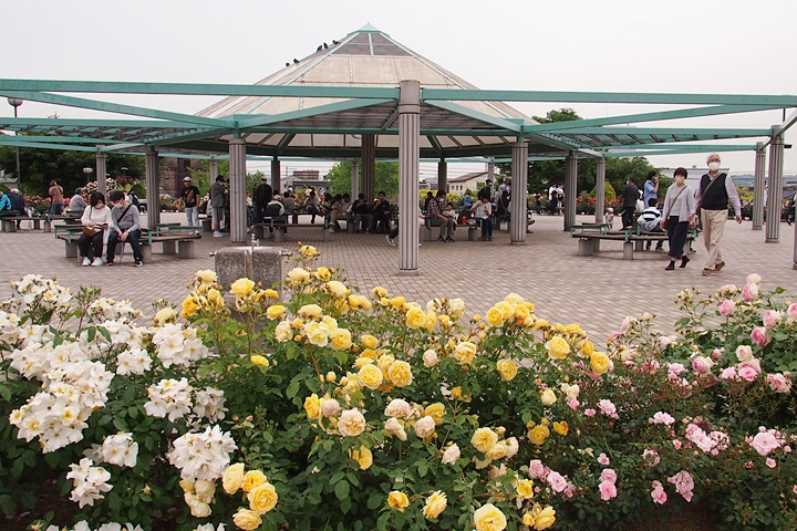 緑町公園内の大勢の来訪者の中、バラの鑑賞も終えましたので、そろそろ退散です。