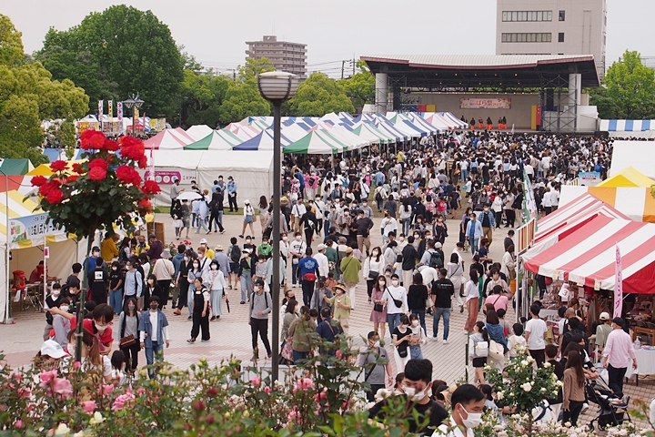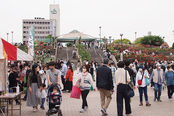 福山市最大のイベント『福山ばら祭』ですから、規模縮小で開催の今回も仲々の人出でありました。