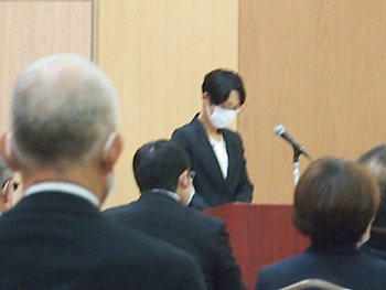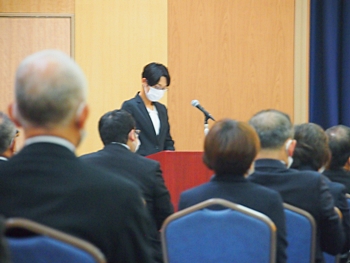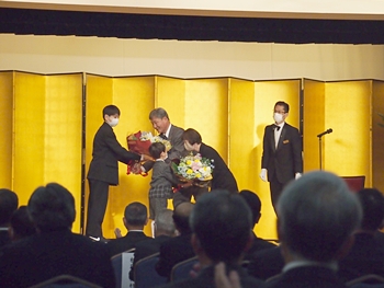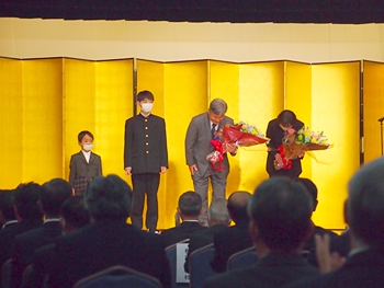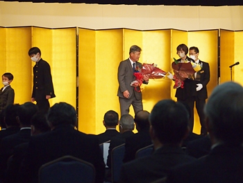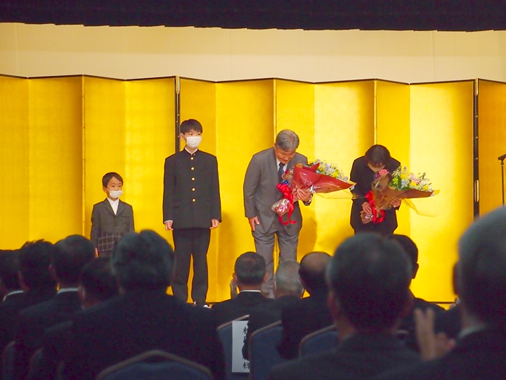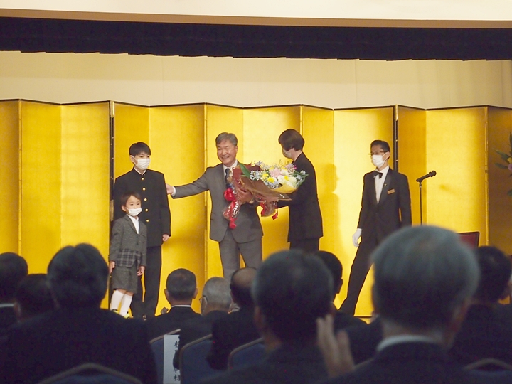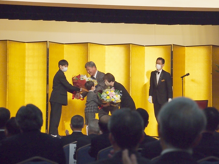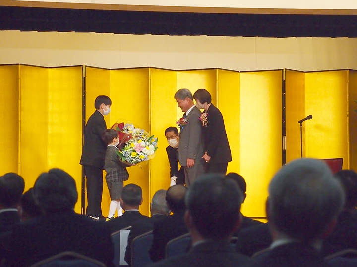 今岡福山市議会副議長の祝辞が終わりますと、熊谷議長の謝辞と続きます。そして、お孫san達による花束贈呈へ(^-^)