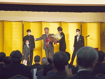 お孫san達による花束贈呈に続きまして、最後に、親族を代表され謝辞が…