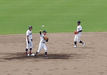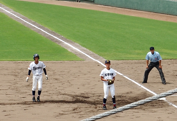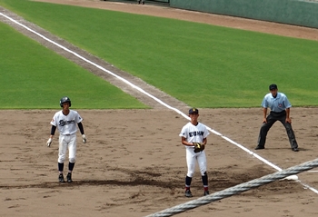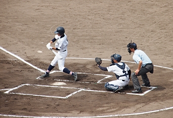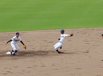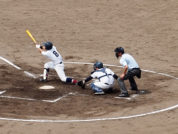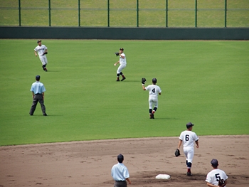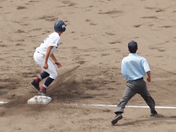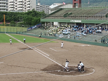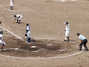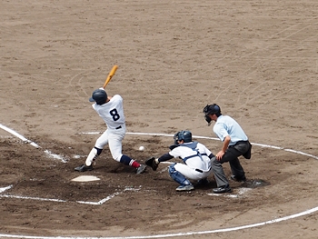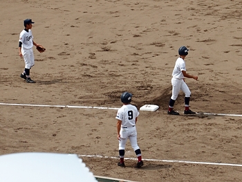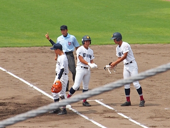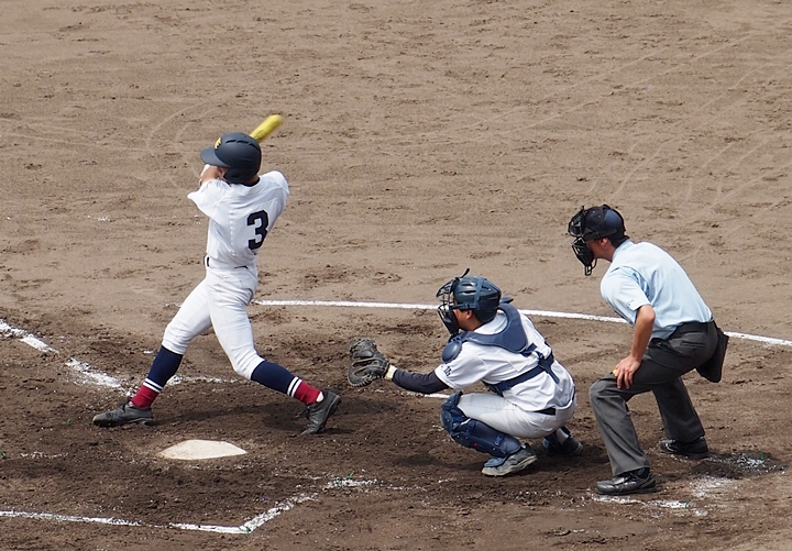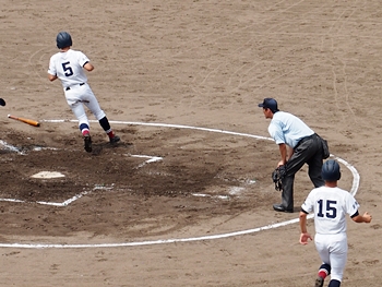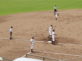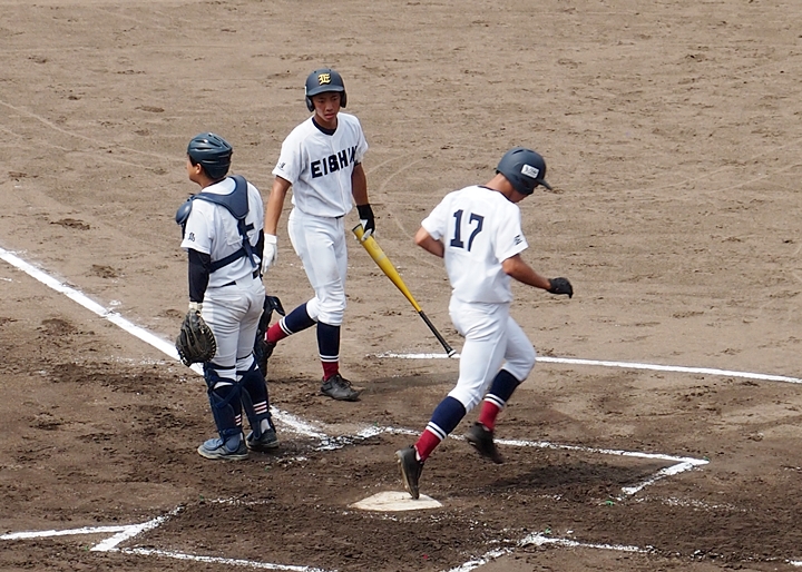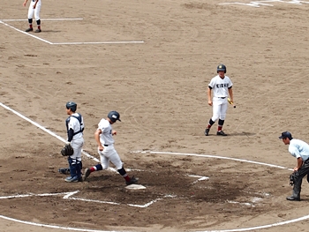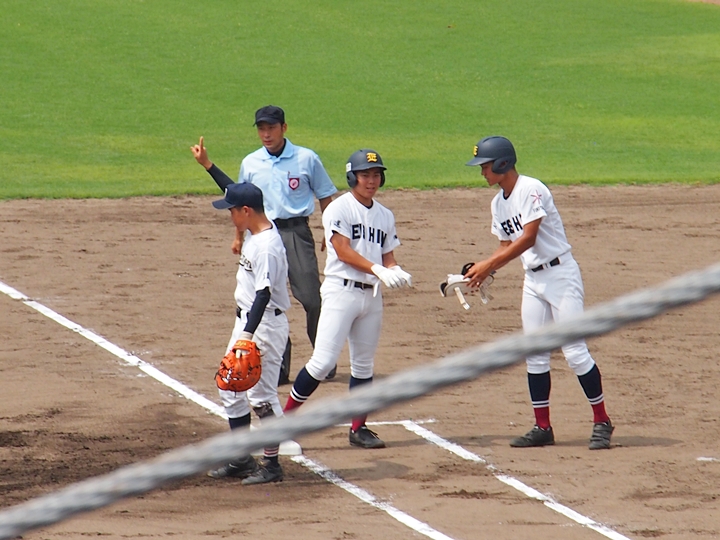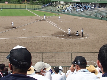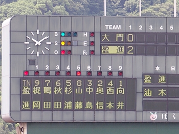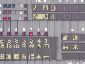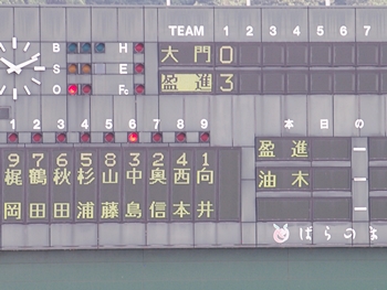 その裏の盈進の攻撃、そつの無い攻撃で、1点、そして、また1点と得点が続きます。う〜ん、力の差が歴然かも…
