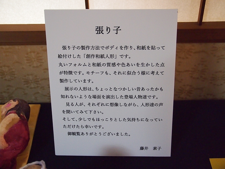 展示の人形は、ちょっとなつかしい昔あったかも知れないような場面を演出した登場人物達です。