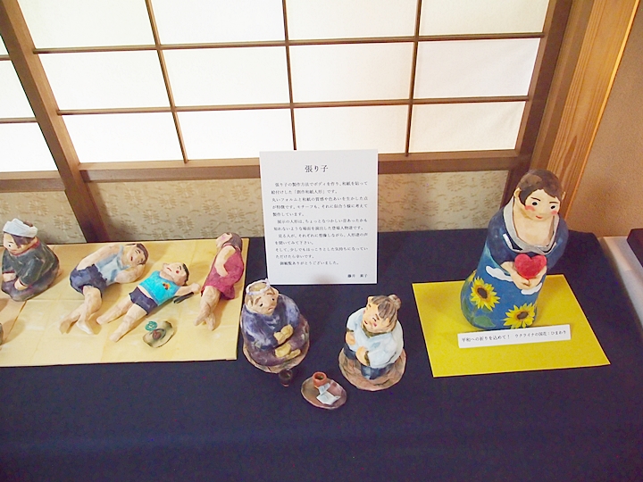 張り子の製作方法でボディを作り、和紙を貼って絵付けした「創作和紙人形」です。