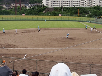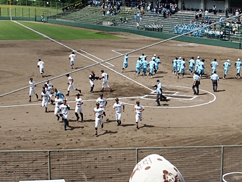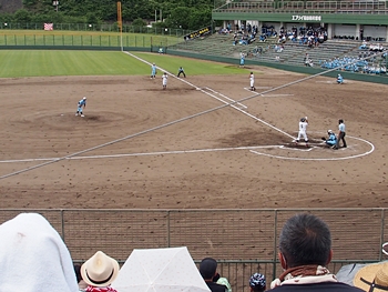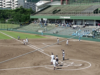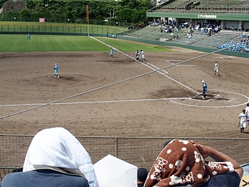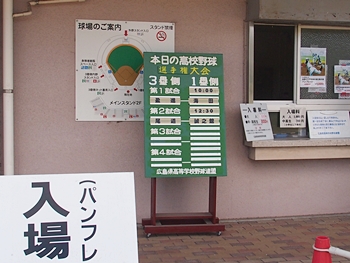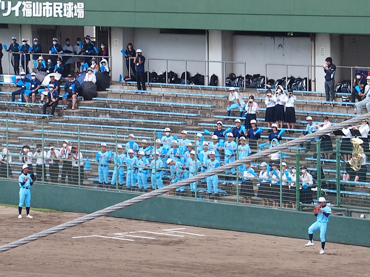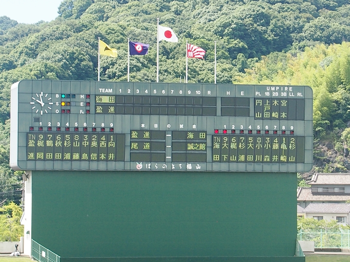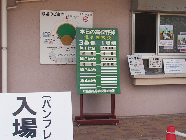 全国高校野球選手権広島大会も、既に4回戦へと入っておりまして、福山市民球場でのこの日の試合は、第一試合が「盈進×海田」・第二試合が「尾道×誠之館」と、いずれも地元校の試合ですから、今大会2度目の球場行きとなりました(^.-)☆
