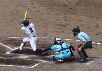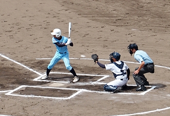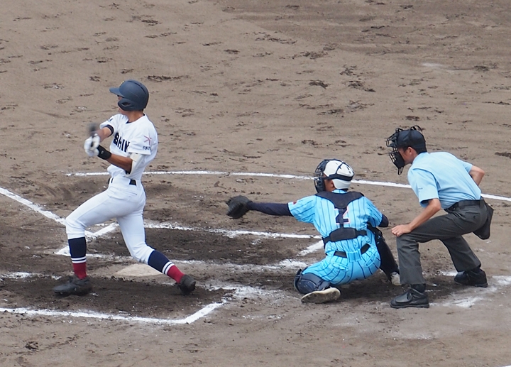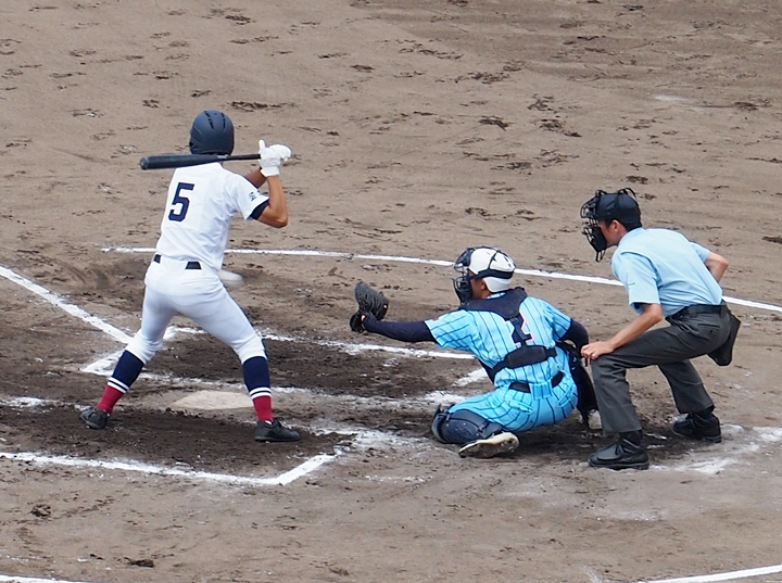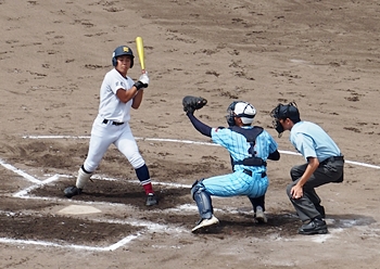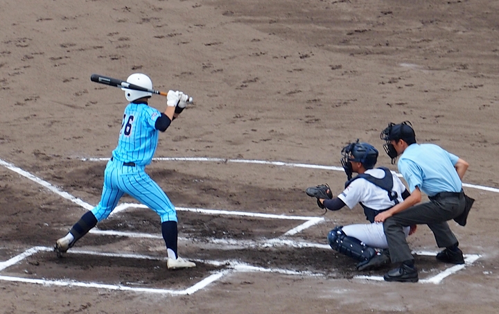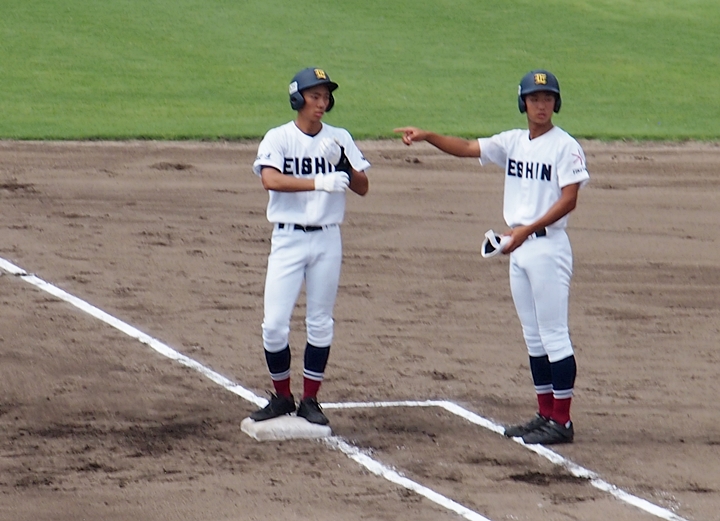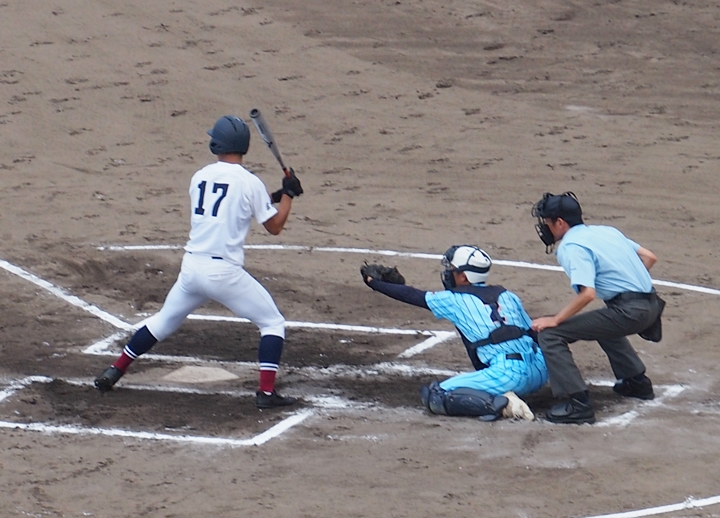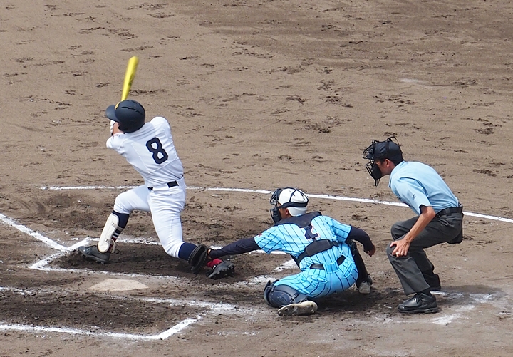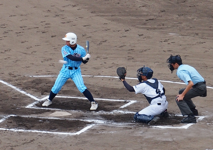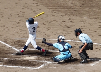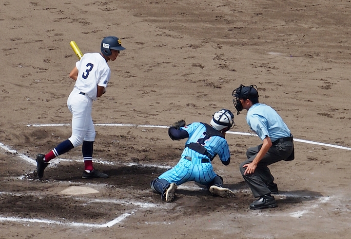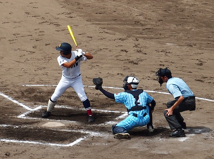 まずは盈進高が1点先取し、走者は3塁に。まだまだ追加点のチャンスが続きます。