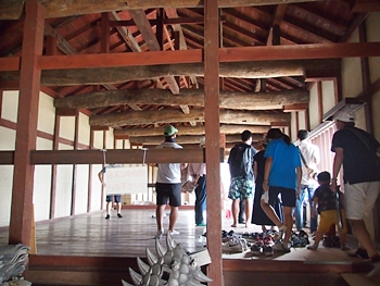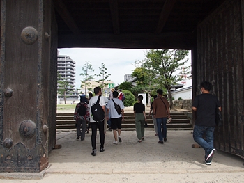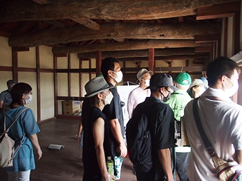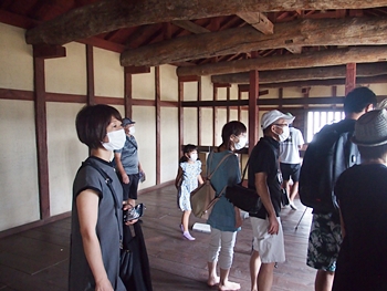 筋鉄御門(すじがねごもん)の中に入りますと、皆さんは板間に上がって説明を(^-^)
