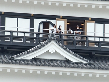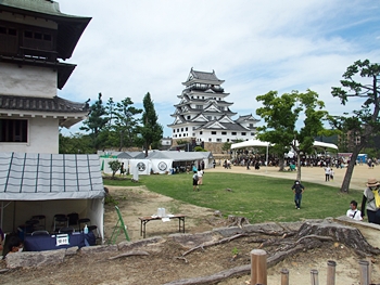 「伏見御殿跡」に立ち、本丸内を見廻して、何枚かパチリ。う〜ん、リニューアル直後ですから、天守は大変キレイです(^_^)v