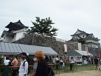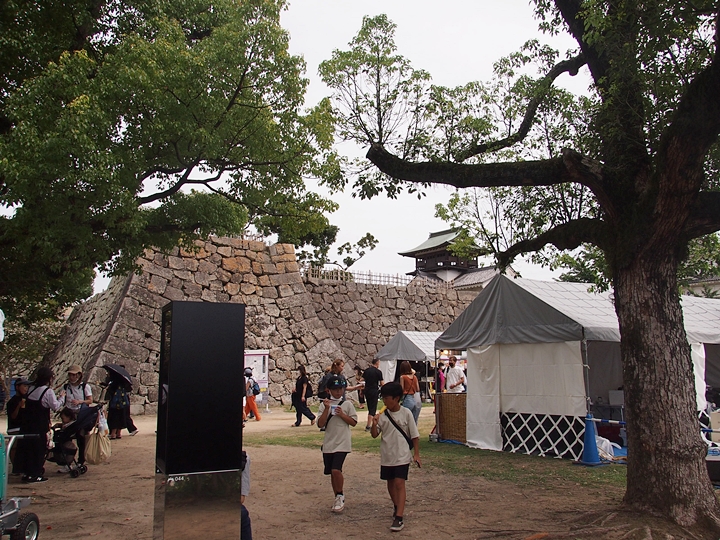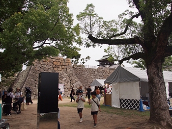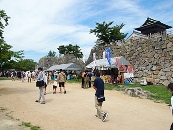 天守を見上げながら鐘櫓方向へ進んで行きますと、鐘櫓の石垣下には露店が何軒か(^-^)