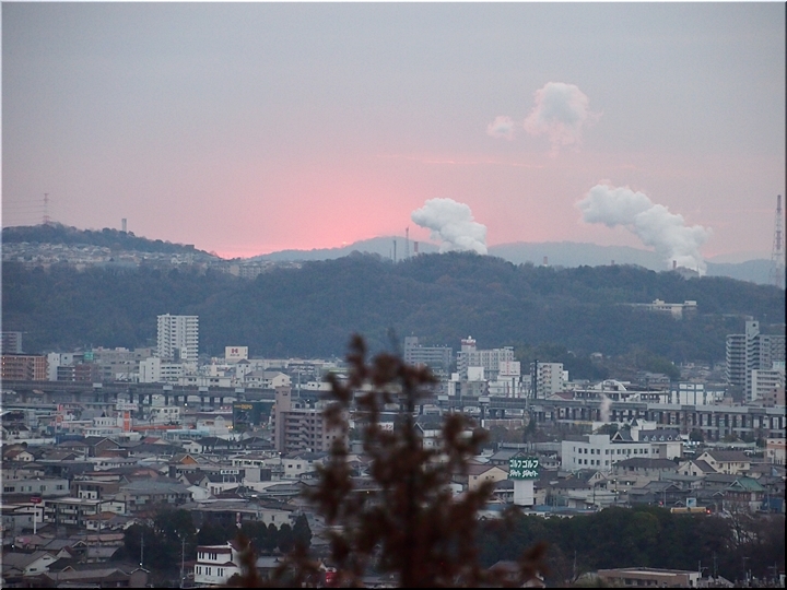 日の出時間が迫って来ますと、次第に空がピンク色に…日の出時刻到来時点で、雲がありませんと日の出を拝めましたのでしょうけど、残念ながら、今朝は叶いませんでしたネ。