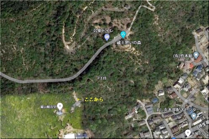 日の出には未だ充分時間がありますから、駐車場から遊歩道をノンビリ歩いて巖山観音堂¥纒モりの岩場へと向かいます。駐車場には、先客が…車が一台駐まっておりました。