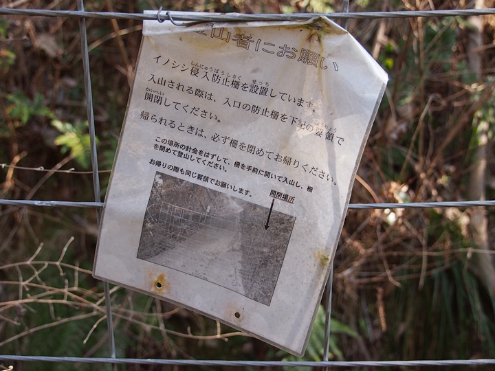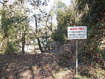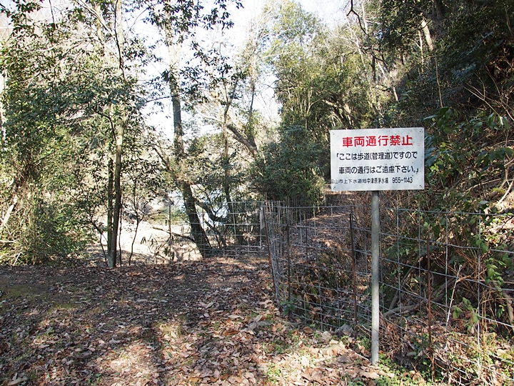 下側の池添いの登口に向かいますと、ここにはフェンスで遮断され進入禁止でありました。最近は何処に出掛けましても、こぅしたイノシシ避けのフェンスが設置されています場所が多くなりましたネ(^-^)