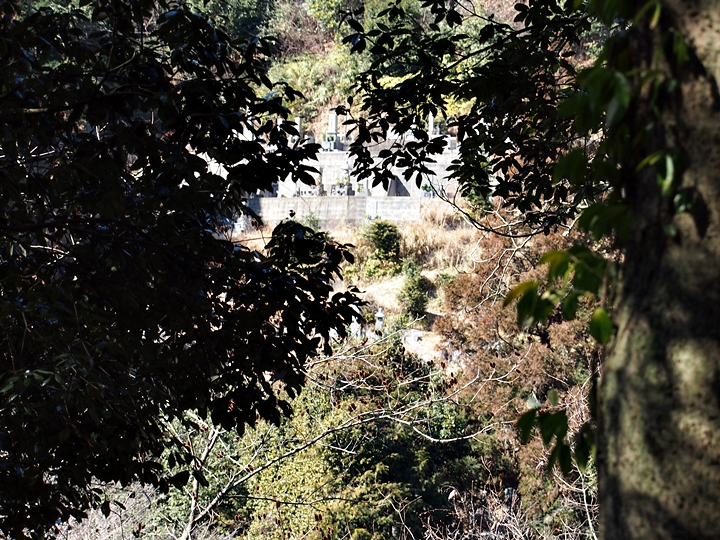 鐘楼の奥へ直進しますと、墓地に出ましたネ。確か、この墓地から一乗山城跡への上り口に向かう道に下りられるハズなんですけど、墓地の下に眼を向けますと、草木に覆われ下る道が分かりません。