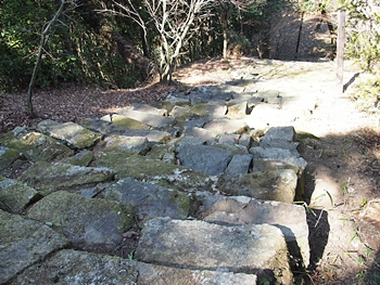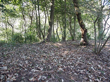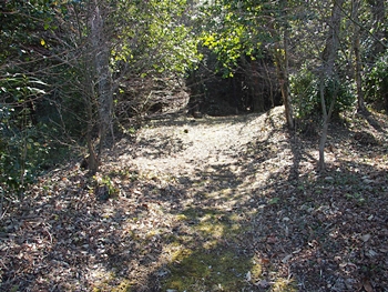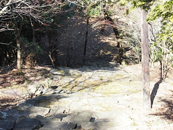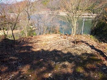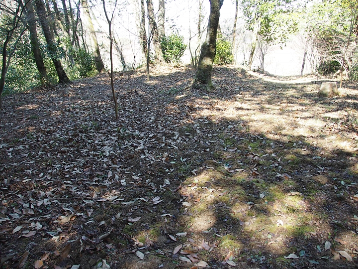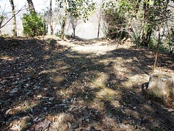 石段を下って行きますと、平らなスペースが…当時は、ここに曲輪が存在ましたのでしょうねぇ〜