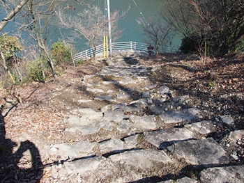 更に進んで行きますと、また石段が…これを下ると池淵にと到着です。