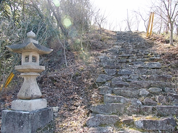 常夜灯の石段まで戻って来ますと、これまた、下って来ました石段を戻らなくては…