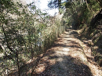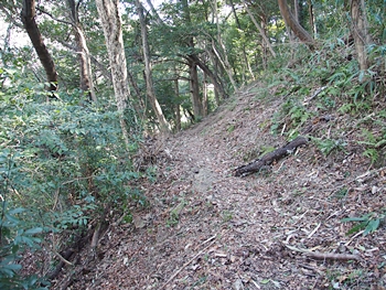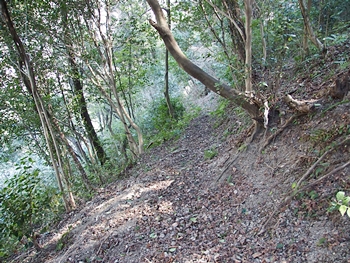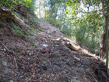 斜面からずり落ちそうな山道を進んで行きますけど、結構荒れていますので横井戸行きは断念し、またまた引き返す事となりました。
