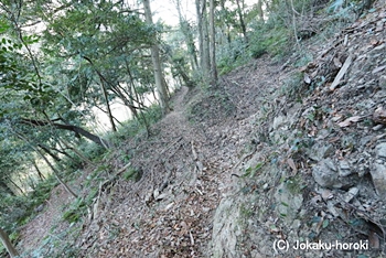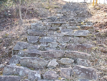主郭の櫓台周辺を含め小振りな石を用いた石積を所々見ることができるが、曲輪から北東山腹に降りる通路に大きめの石を用いた大石垣がある。この石垣は二段に分けて積み上げられており、天正年間(1573年〜1592年)頃の遺構であろうか。