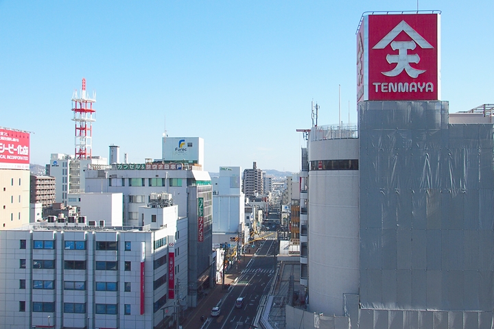 天満屋方面は車の行き来があり、見ているだけでも楽しいです。