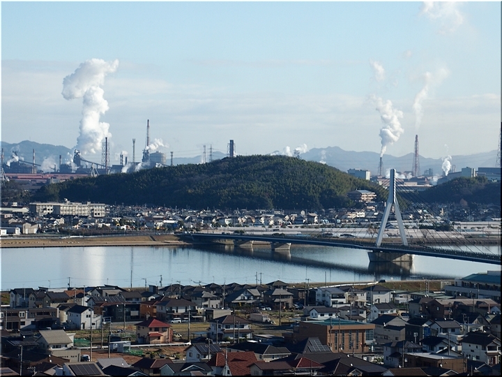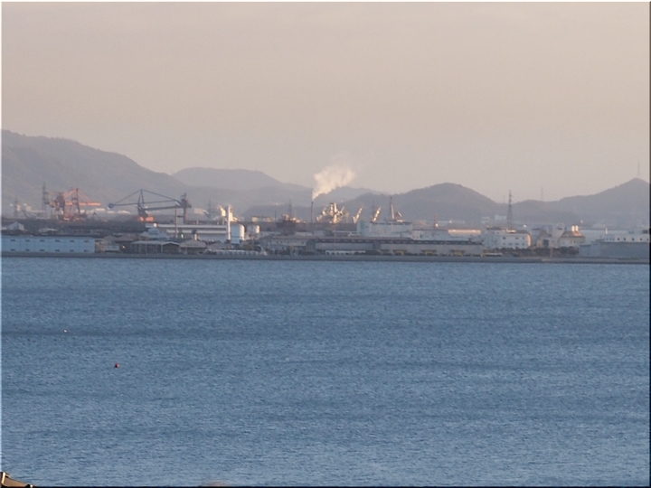 お寺・墓前での読経後、いつものように墓地から眺望です。芦田川の川面・JFEの煙に眼を向けますと、無風状態が一目瞭然。実に穏やかな天候ですから、今年一年も、こんな穏やかな日々であって欲しい…こんな強い想いが生じてしまいましたネ。