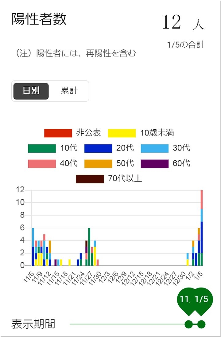 1/31迄に減少方向に向かえばイィのですけど、今年もまた、コロナコロナで明け暮れますのかも…