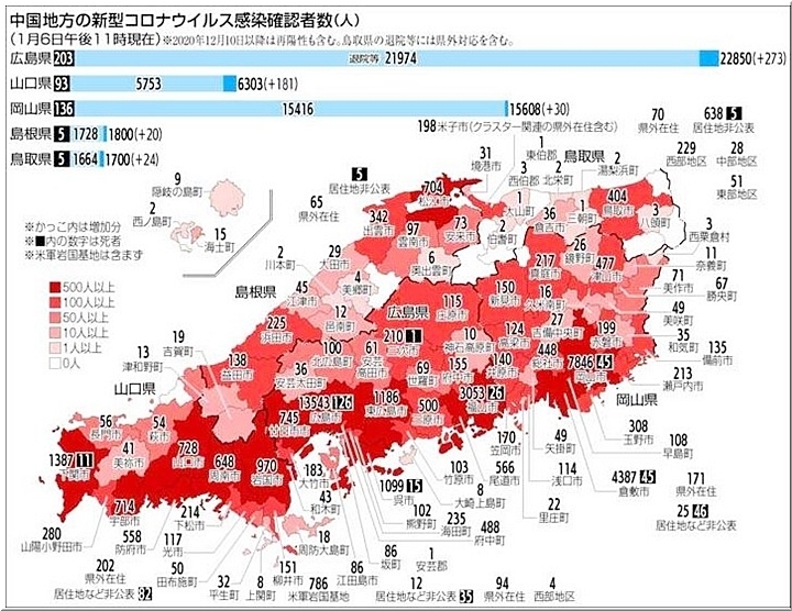 山口県は、感染が急拡大している米軍岩国基地がある岩国市と隣の和木町を重点措置の対象区域にする。他市町も感染者が増えつつあるが、年末年始の移動が要因とみて加えなかった。