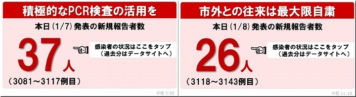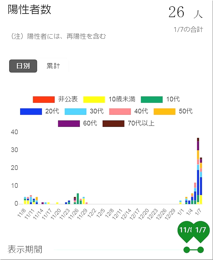 それにしましても、昨日が37名、本日が26名のコロナ患者発生で、年明けと共に急拡大ですから、今後の動向に危惧してしまいます。