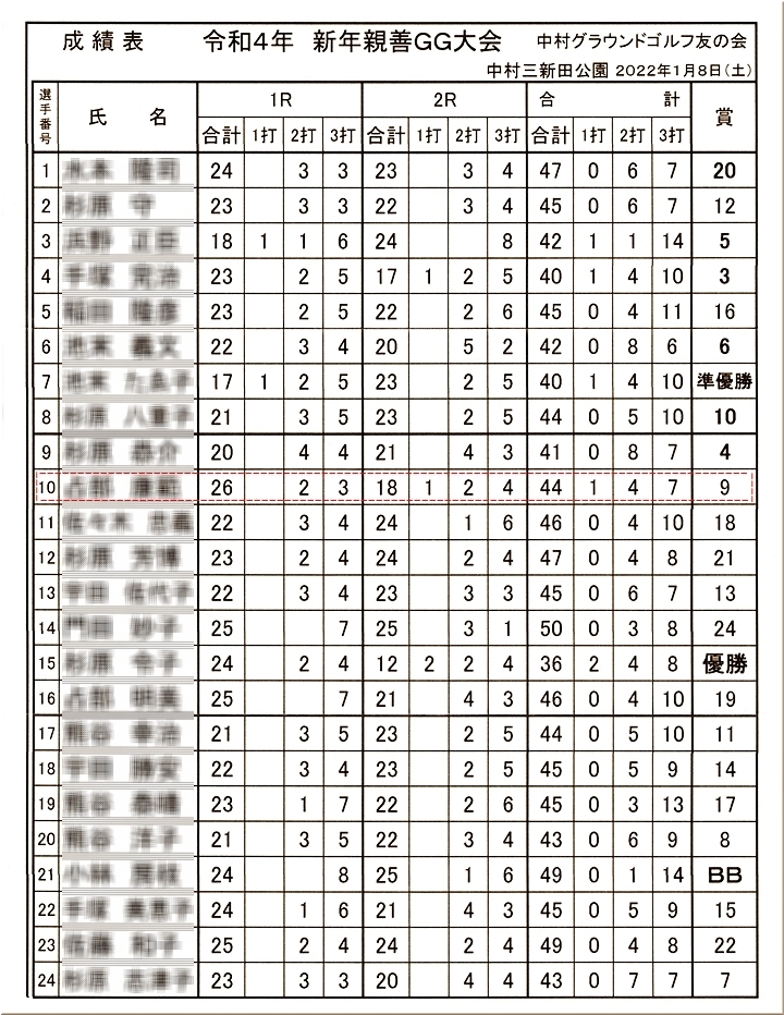 写真と一緒に成績表も頂きましたけど、優勝はSsanで、準優勝がIsan。お二人とも女性ですけど、二度のホールインワンでダントツの優勝ですから、ご立派であります(^_^)v