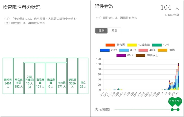 「第6波」で感染が急拡大している今月の感染者は、この日までに計7,158人となり、月別でこれまで最も多かった昨年8月(6,545人)を半月で上回った。
