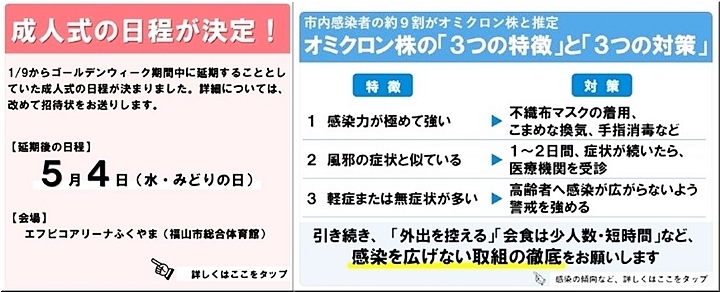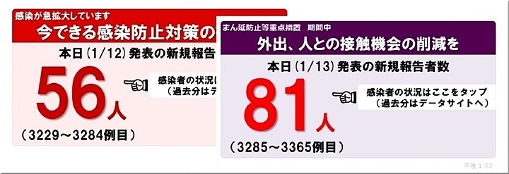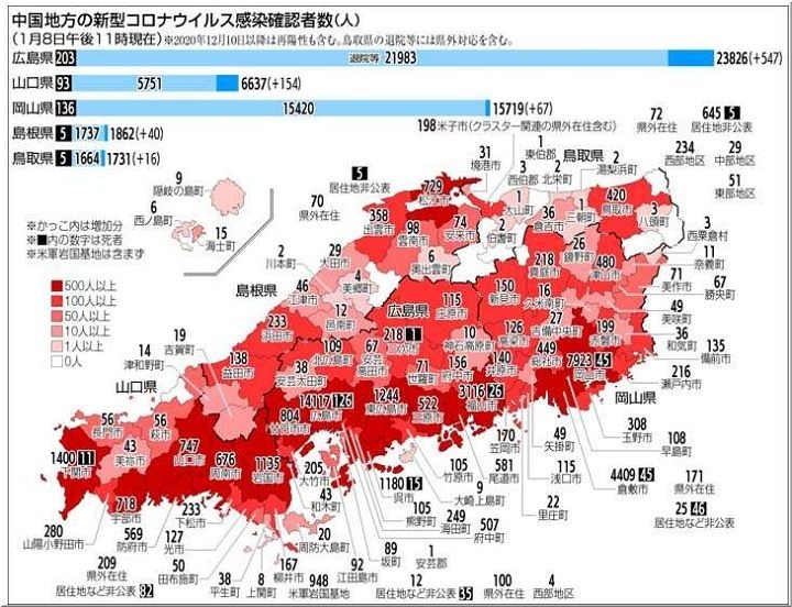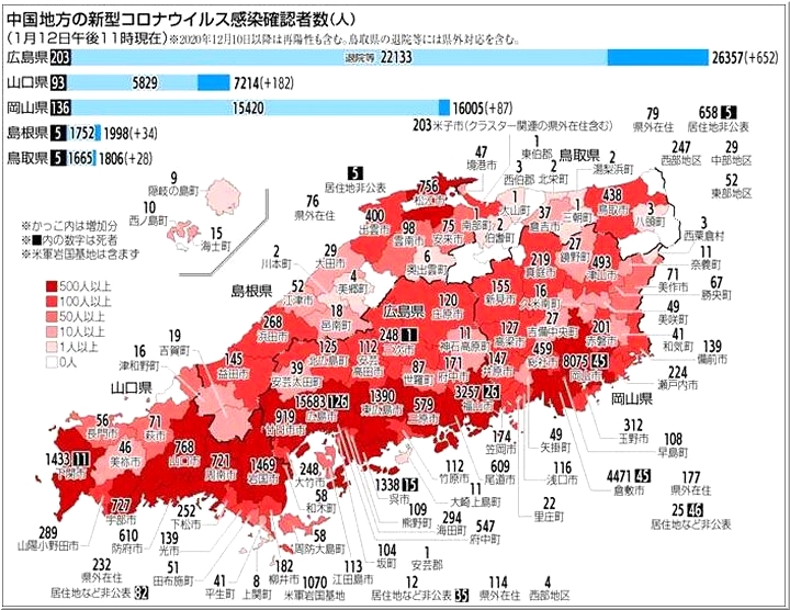 中国新聞sanの速報によりますと、明日・1/14(金)から、広島県の新型コロナ「まん延防止」対象地域を23市町に拡大されますとか…