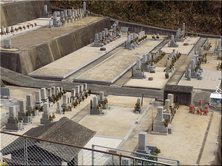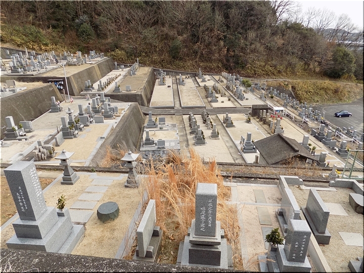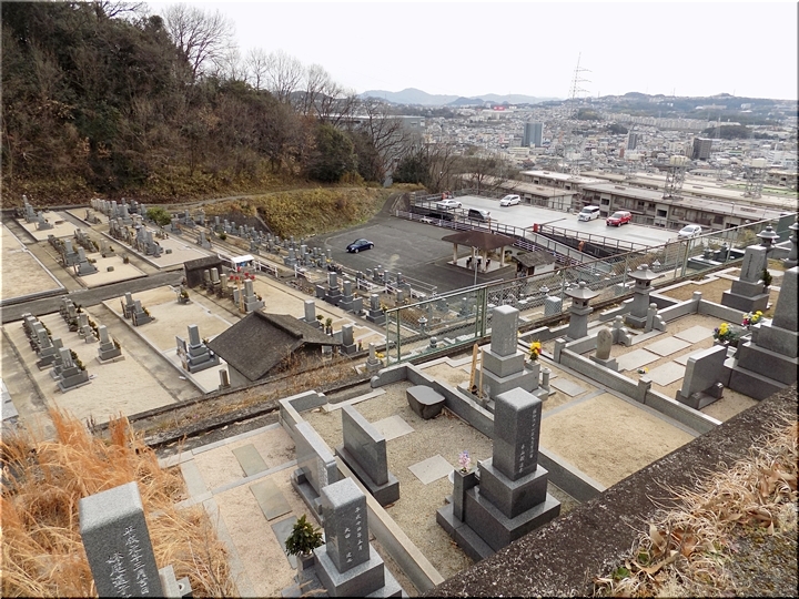 終わりますと、サッサと退散しようかとも思いましたけど、上側の駐車場に上がり墓地からの景観をパチリ(^.-)☆