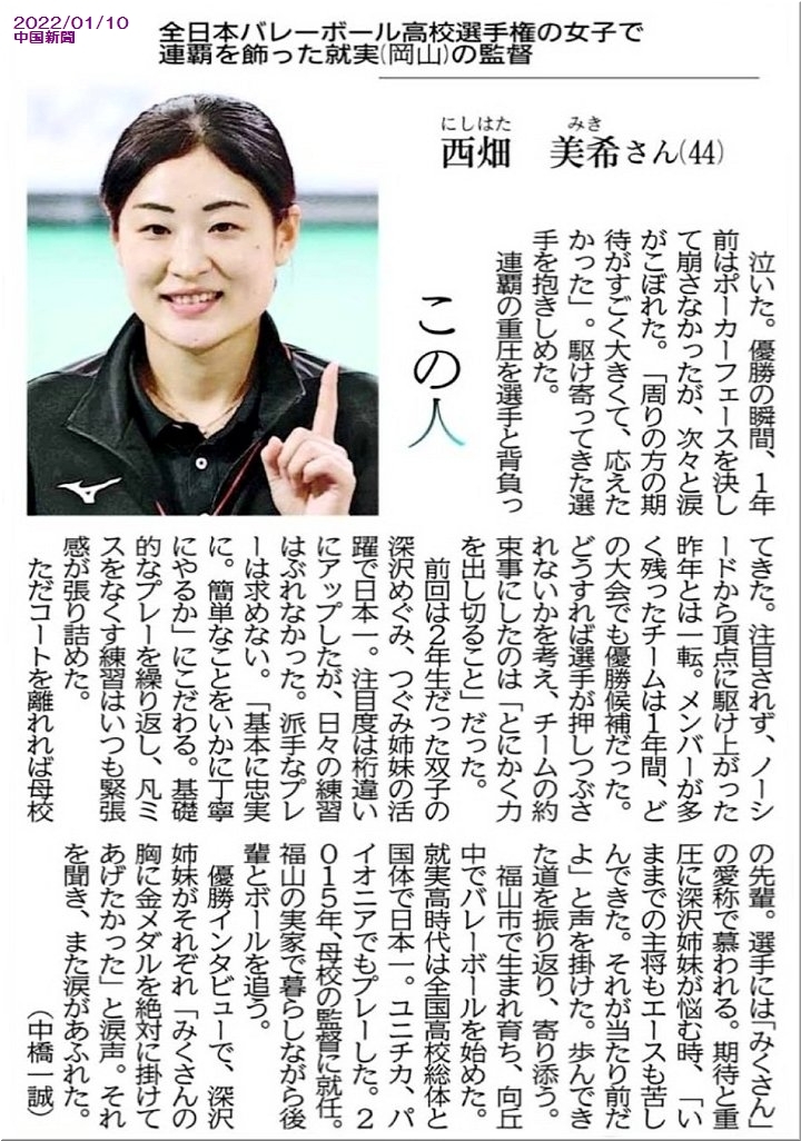 で、この就実高校の監督「西畑美希」sanが、我が町のご出身で、今も我が町に暮らしておられますとは知りませんでしたねぇ〜今朝、中国新聞sanの朝刊に眼を通しておりまして、初めて知りましたGONsanなのであります(^-^;