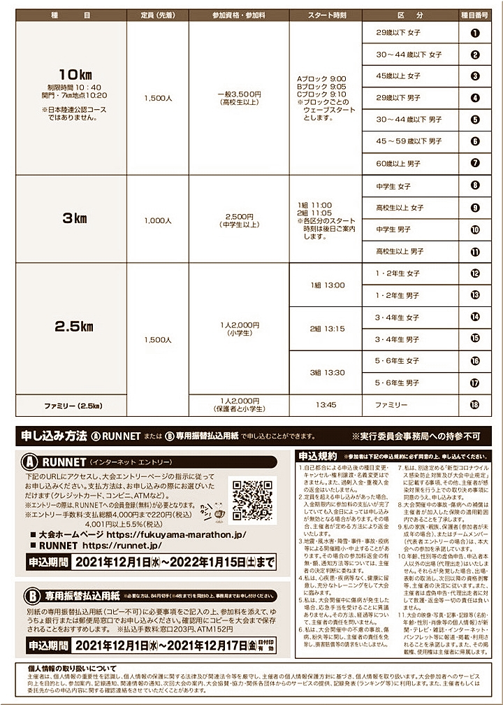 ですけど、種目は、「10km」「3km」「2.5km」「ファミリー2.5km」の4種目で、ハーフマラソンは実施されませんようです。