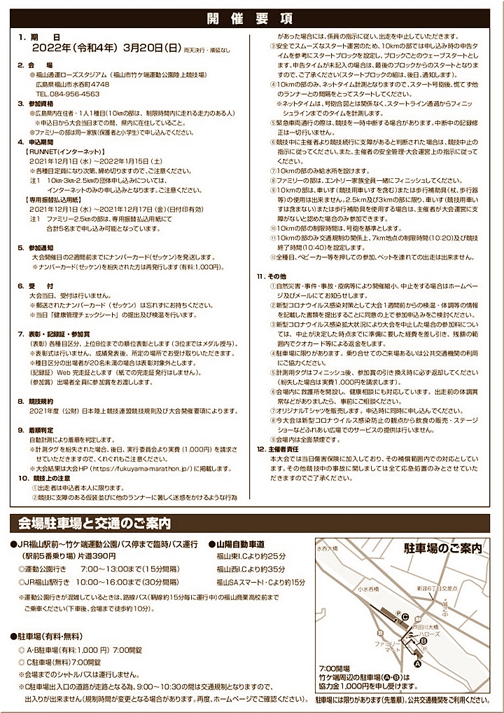 昨年、一昨年と、中止となりました「ふくやまマラソン」…今年は、3/20(日)に開催となりますようであります(^.-)☆