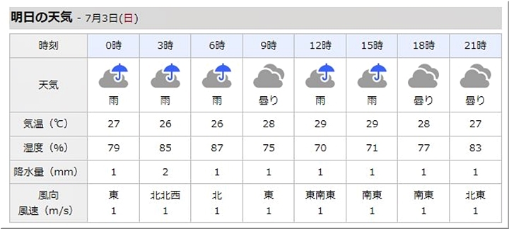 夕方、中止の旨、連絡が入りましたので、その時点で、天気予報を確認してみますと、