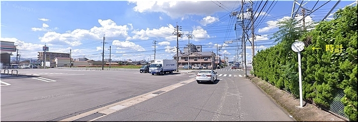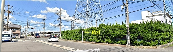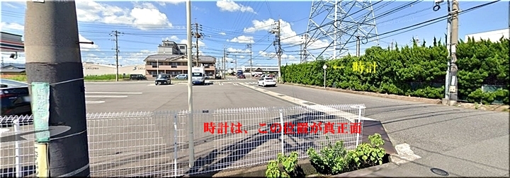 敷地自体は、多分、中国電力sanの所有なんでしょうけど、時計の向きは、別にコンビニ(セブンイレブン)方向でもありませんで、コンビニの駐車場の片隅方向に向いています。