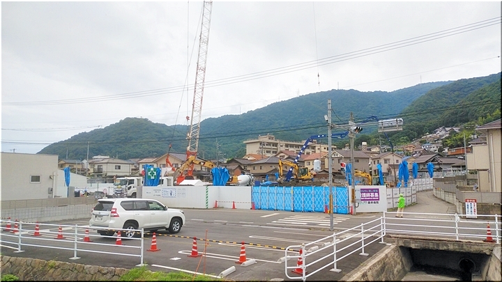 定刻10分前に水呑交番前の安政橋に到着で、待機時間を利用しまして病院建設現場を暫し眺望。