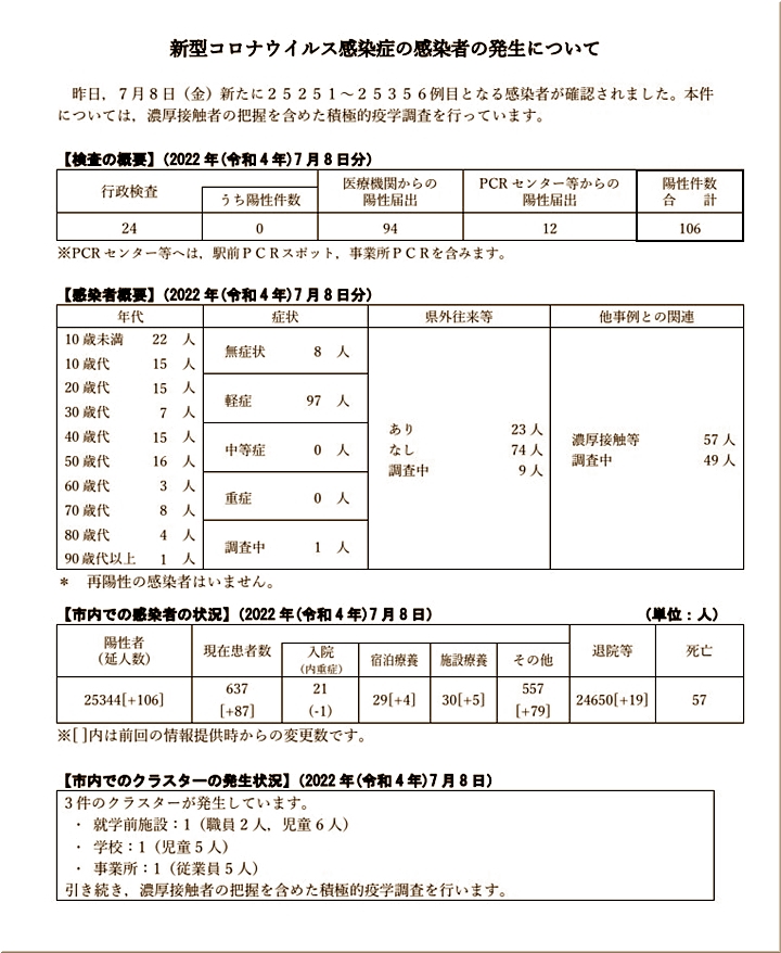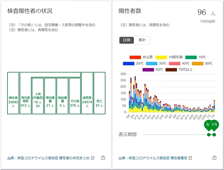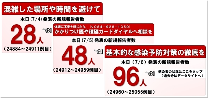 う〜ん、福山市の7/6(火)のコロナ感染者は、96人でしたか…