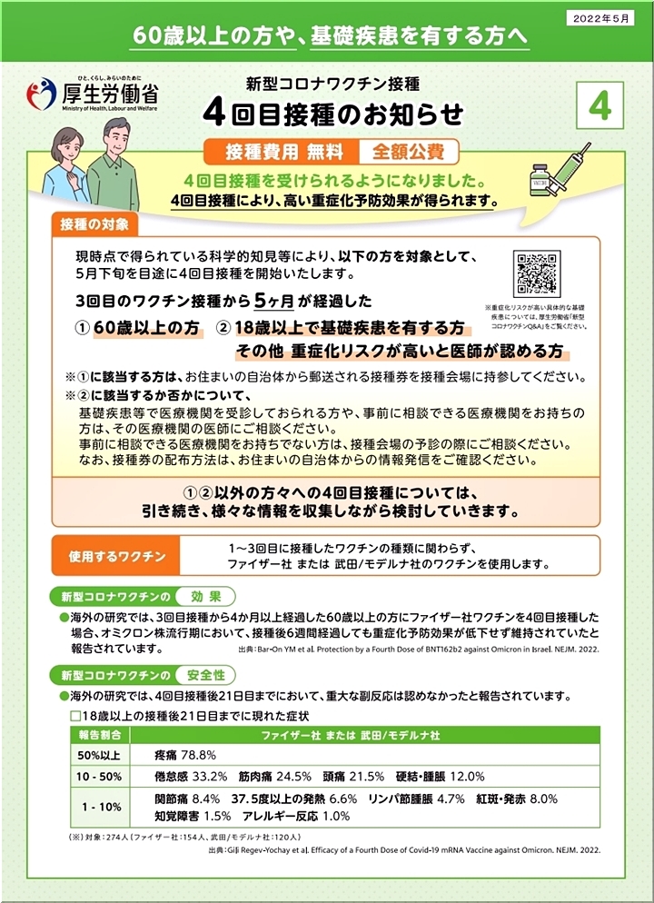 ところで、そろそろ気になりますのが、4回目のワクチン接種。