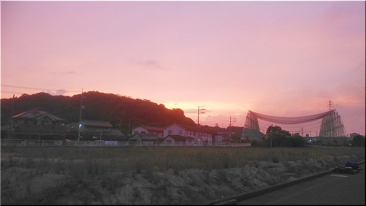 それから数分後、急いでスマホを手にしました時には、鮮やかなピンク色の空が薄らいでしまいましたが、どぅにか撮れましたのがこの画像。