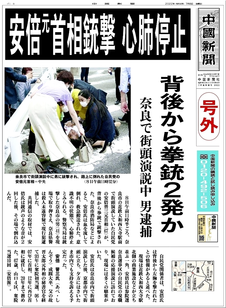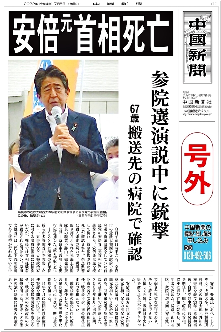 ◆【速報】安倍元首相が死亡 搬送先の病院で確認 奈良市で演説中に銃撃され 病院会見「弾丸の傷が心臓に」