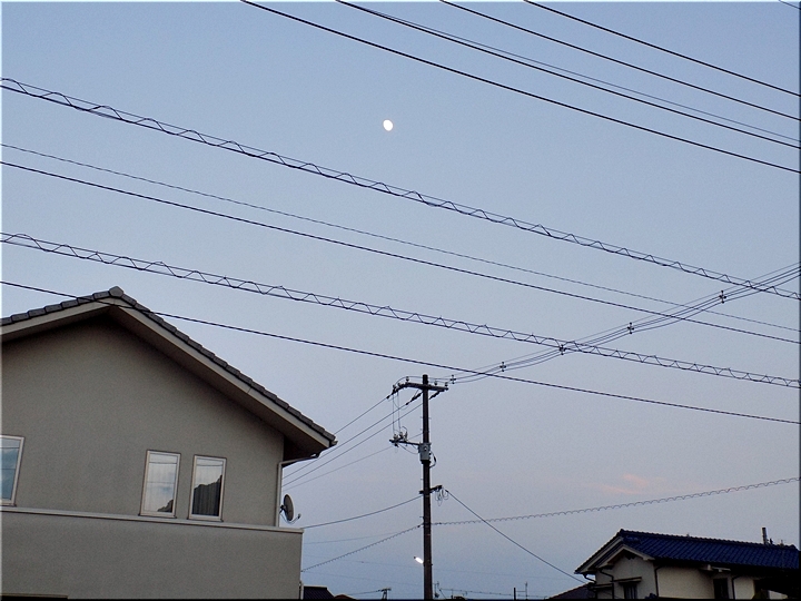 そして、何気なく南方の空を見上げますと、雲一つ有りません夕空に、ポツンとお月様が…